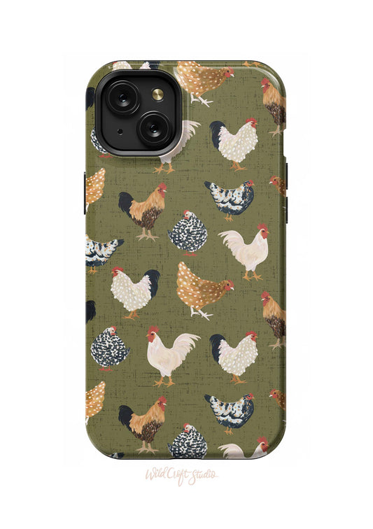 Chickens on Green iPhone Protective Case