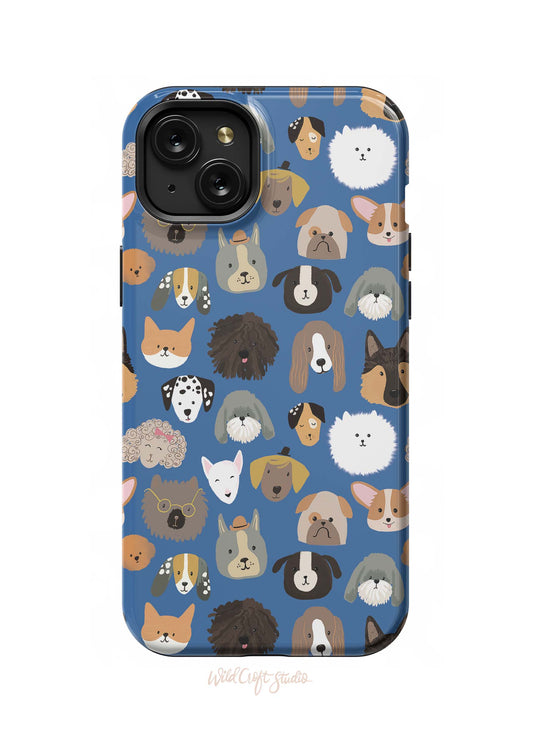 Cute Dog Faces Blue Tough Case for iPhone