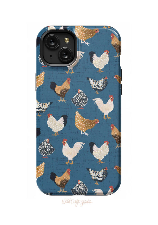 Chicken on Denim Blue Tough Case for iPhone