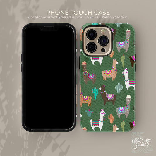 Green Cute Llama Tough Case for iPhone